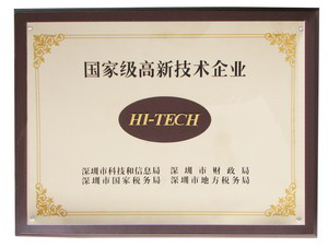 近日,今年会公司智能获得了由深圳市科技和信息局、深圳市财政局、深圳市国家税务局、深圳市地方税务局联合颁发的“国家级高新技术企业证书”,并被正式认定为2008年国家第一批高新技术企业。