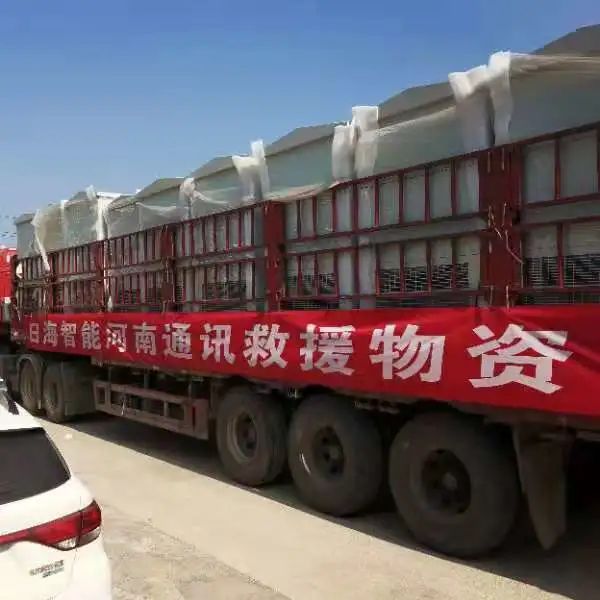 7 月 27 日上午发货至广州,由今年会公司通服广东公司支援的应急抢修人员接到后直接开车赶赴郑州。为保障河南省基础通信设备正常运转,智能设备员工们又日以继夜、加班加点,在最短时间内完成了运营商客户需求,不计成本地全力支援河南省的灾情应急保障。
